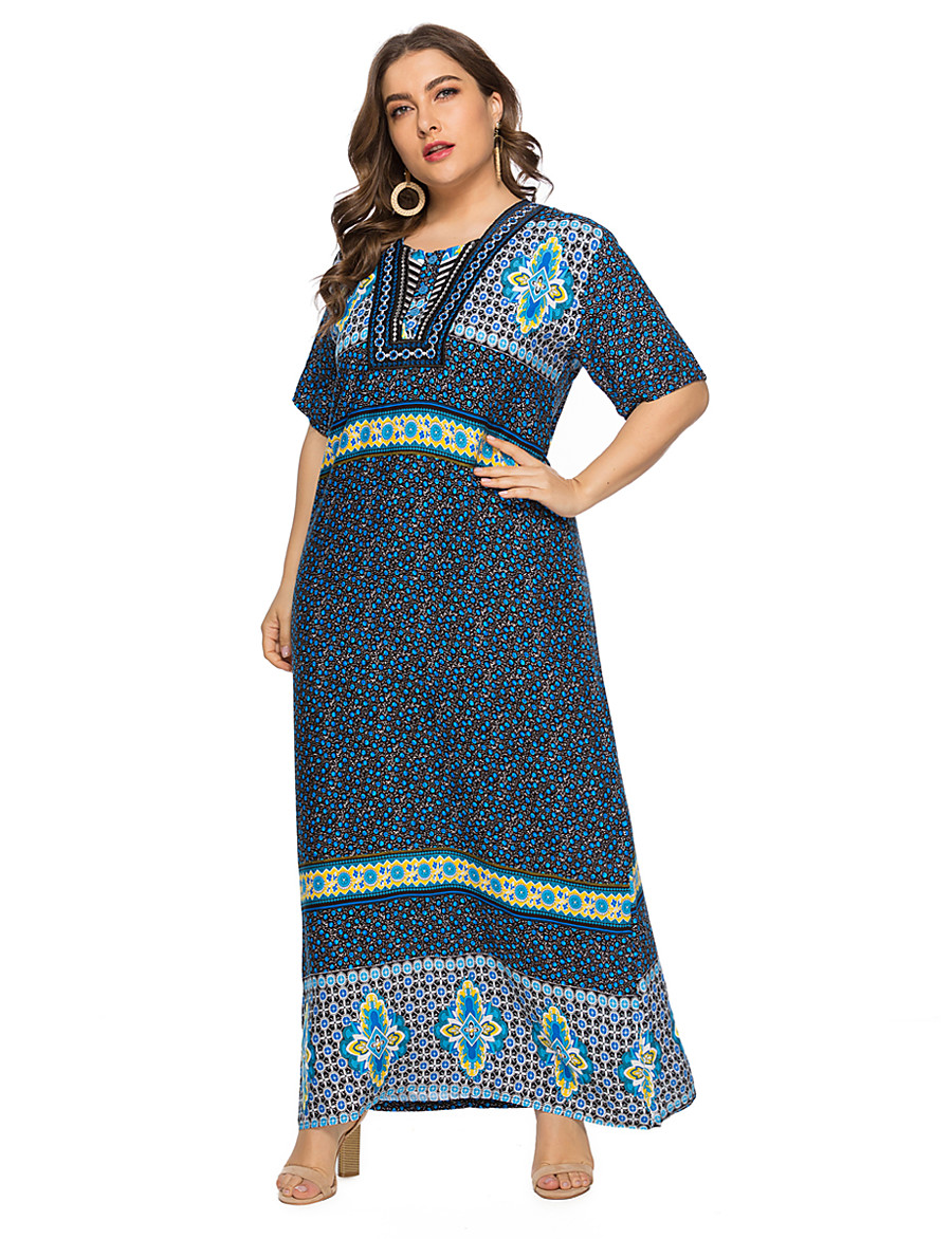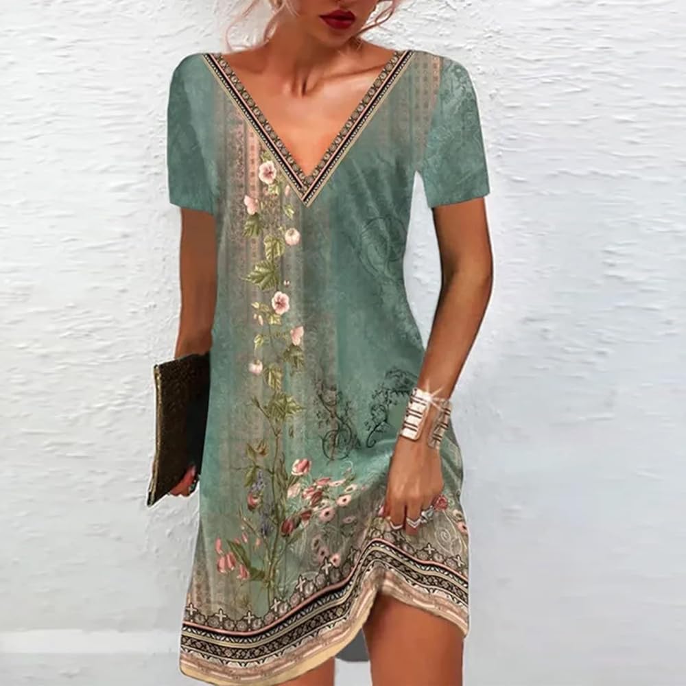👗 Style bohème : Coupe midi, manches courtes, col en V — flatteur et facile à porter. Le tissu est fin et fluide — il bouge bien et ne gratte pas.